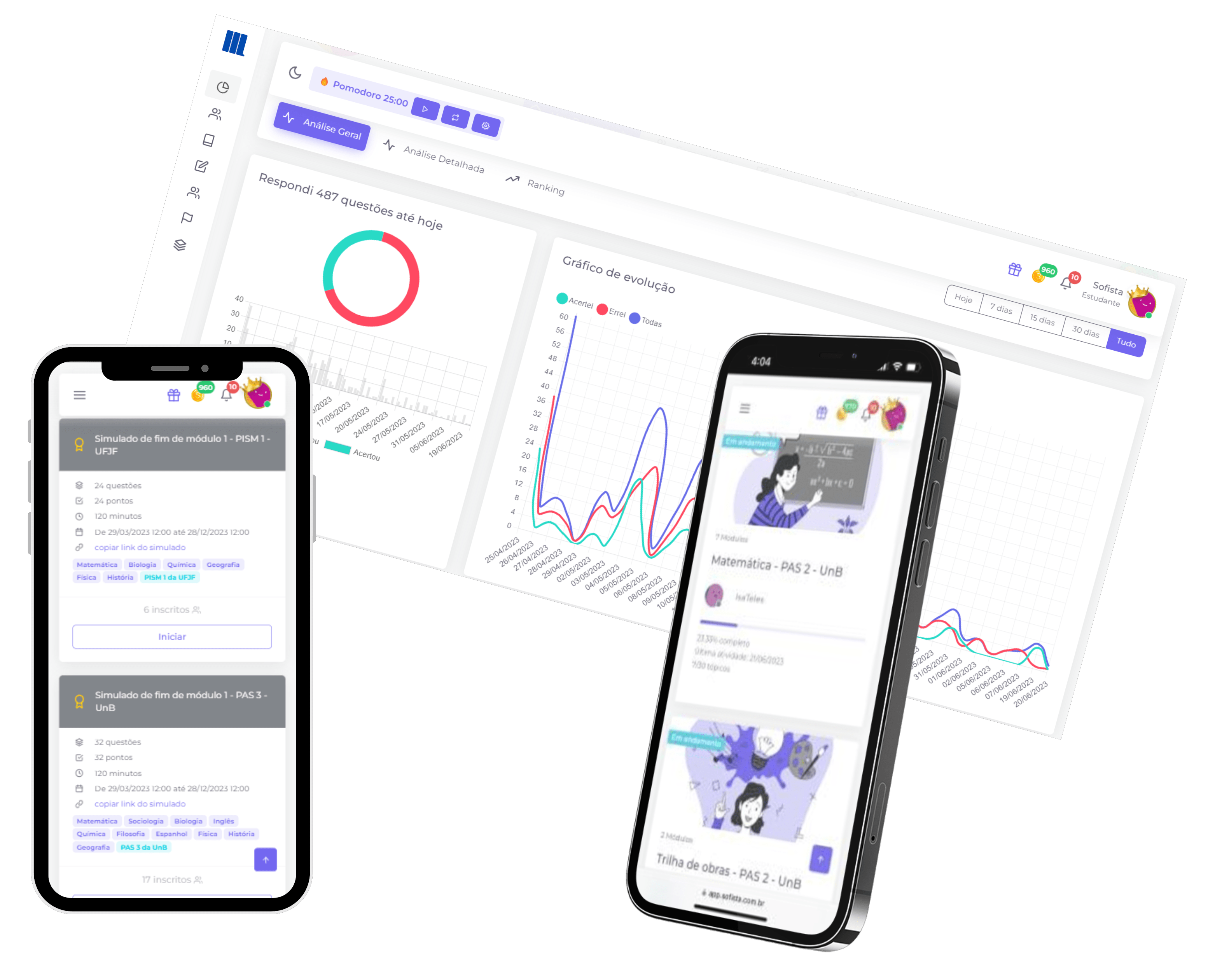 A plataforma mais completa pensada especificamente para a sua prova. Dezenas de preparações, centenas de videoaulas, suporte 24 horas para dúvidas, banco com mais de 20.000 questões, aulas ao vivo, monitorias individuais, correção e aulas de redação.