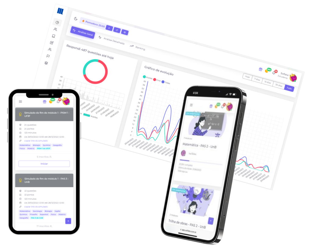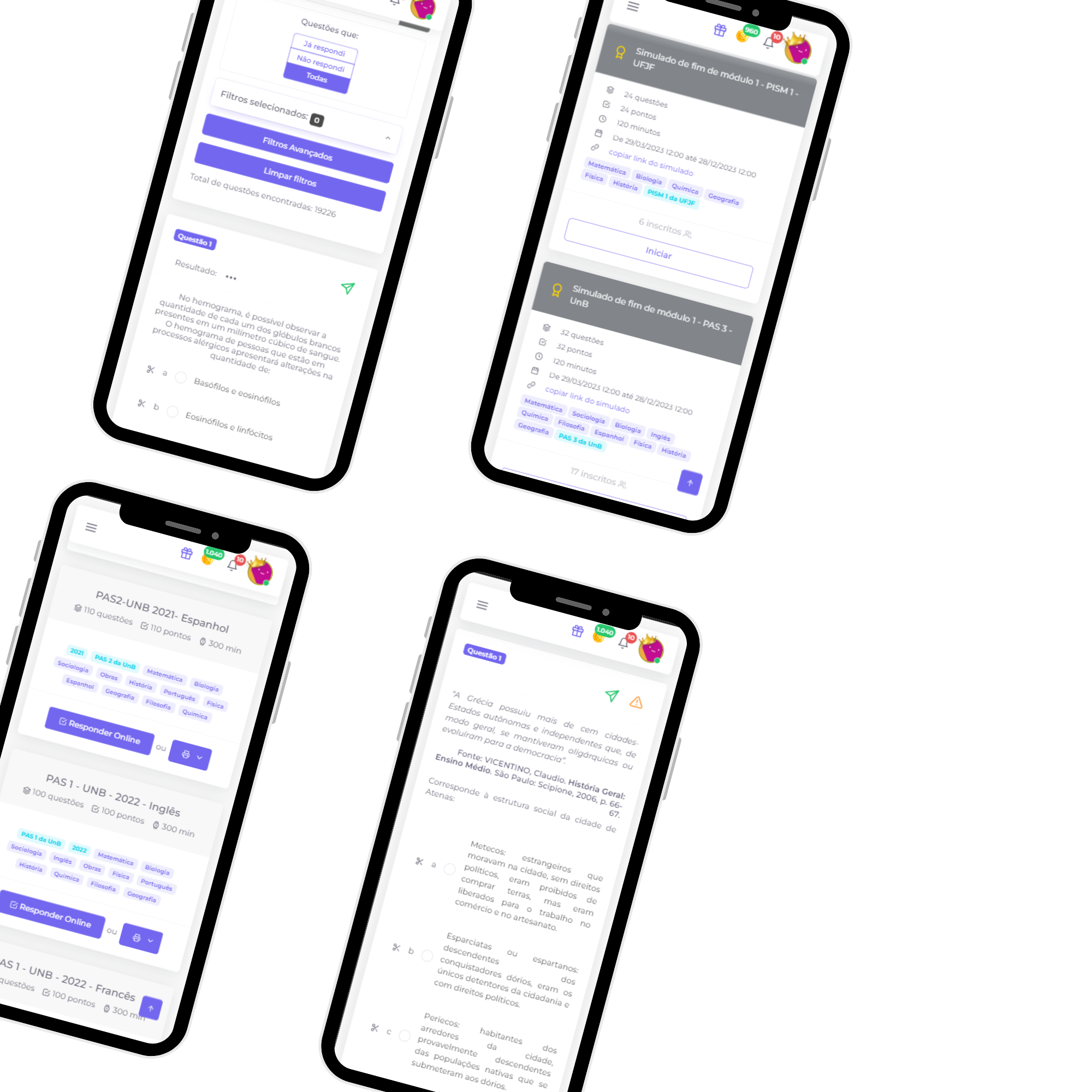 A plataforma mais completa pensada especificamente para a sua prova. Dezenas de preparações, centenas de videoaulas, suporte 24 horas para dúvidas, banco com mais de 20.000 questões, aulas ao vivo, monitorias individuais, correção e aulas de redação.